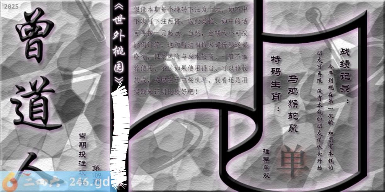 109期藏寶圖 新:清坐闲披贝叶文 老:寻到溪源壹线初 禁:龙禁:6尾玄機字:《收》