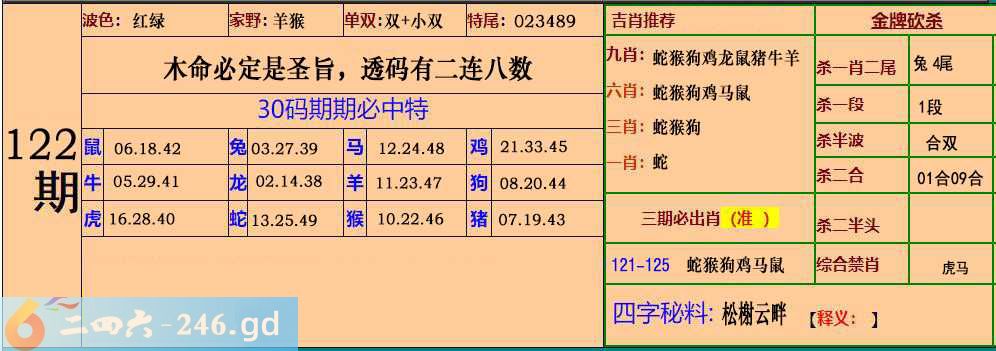 122期:30码期期必中特