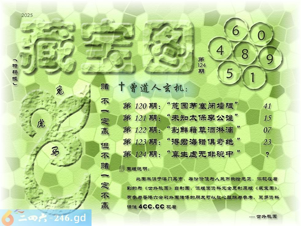 124期藏寶圖 新:真生虚无非碗中 老:问着州民浑不识 禁:鼠 禁:7尾 玄機字:《名》