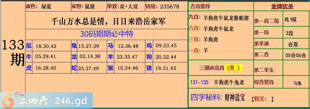 133期:30码期期必中特