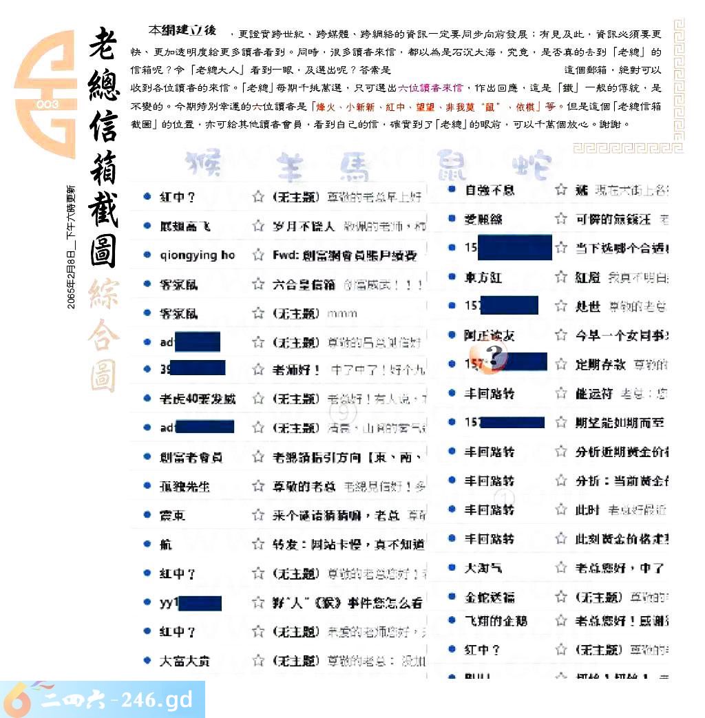 003期:六合皇金句/老总论码/萧公子/林大师/五行夺码/老总信箱截图