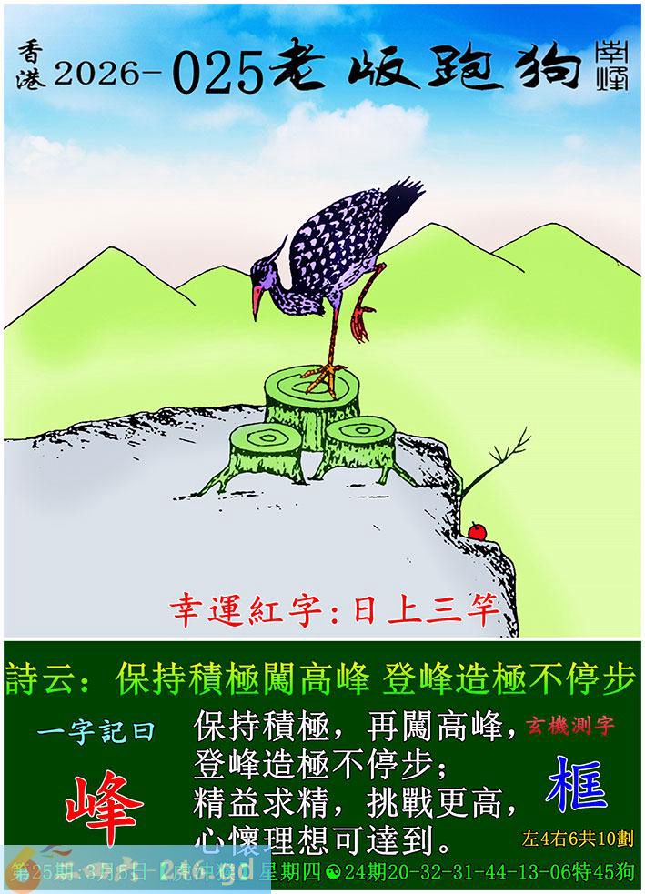 025期老版跑狗一字記之曰:【峰】 詩雲:保持積極闖高峰,登峰造極不停步。