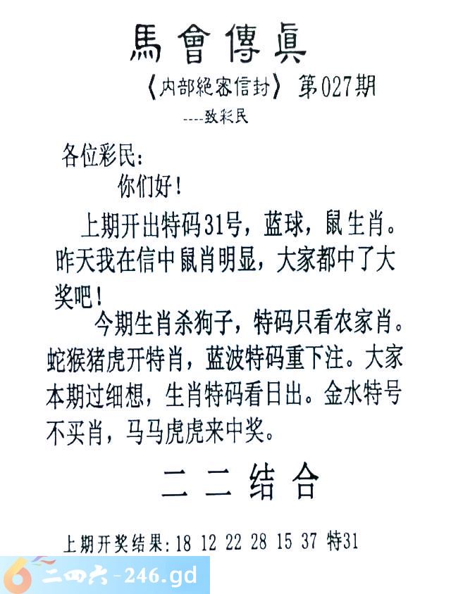 027期:首发推荐:≮馬會傳眞≯→(香港正版)