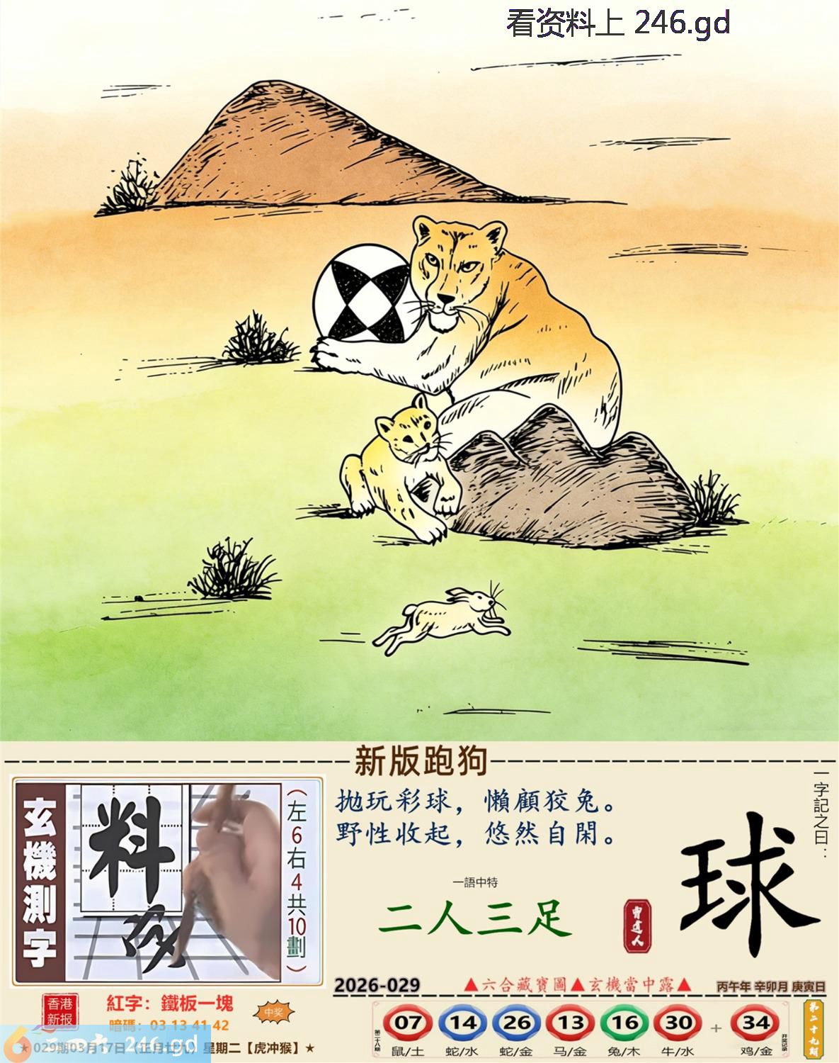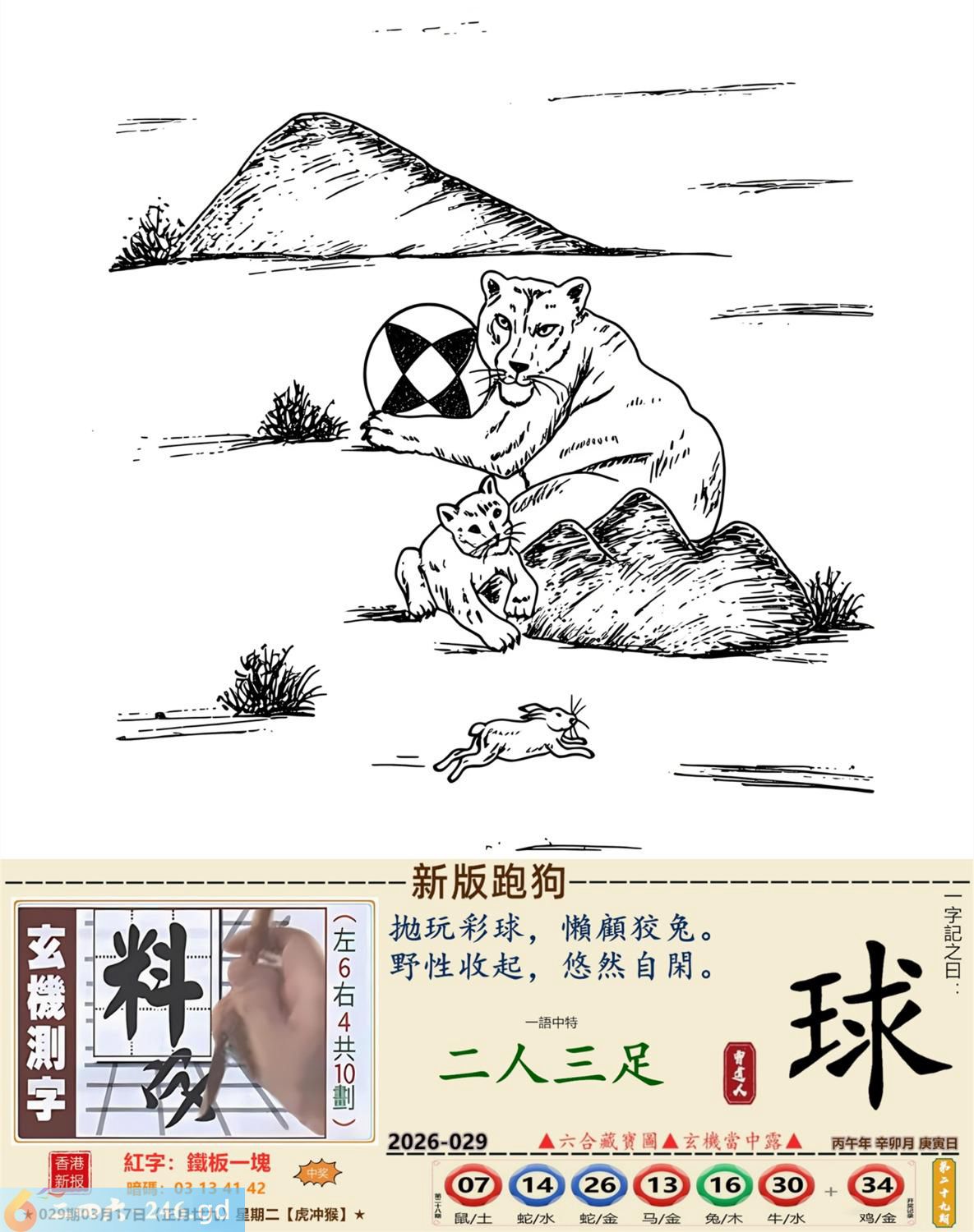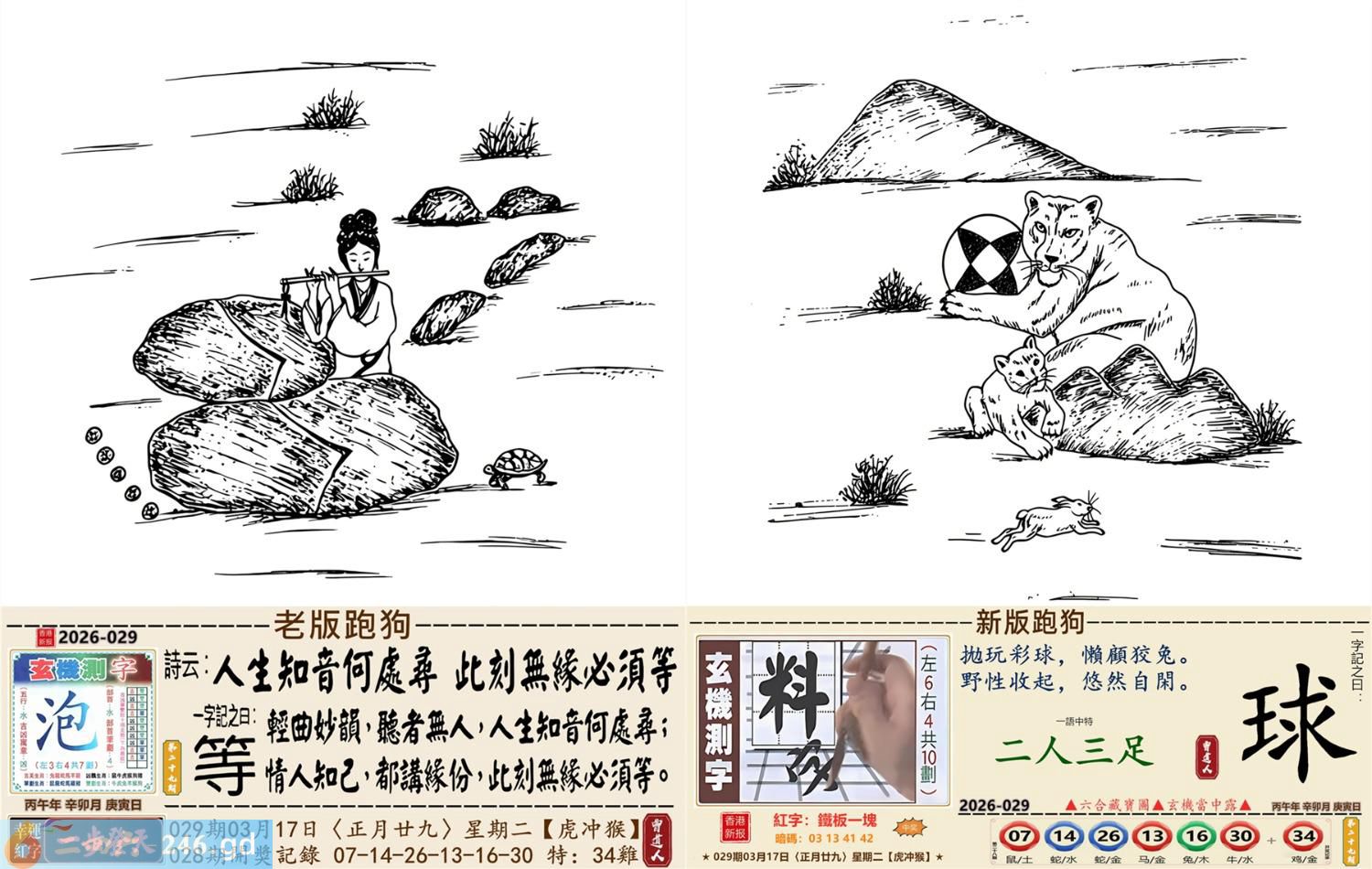 本帖最后由小歪于2026-3-1318:46编辑 2026年3月17日星期二松柏木虎日冲猴 029期:老版跑狗玄機一字記之曰:【等】 詩云:人生知音何處尋,此刻無緣必須等。 輕曲妙韻,聽者無人,人生知音何處尋; 情人知己,都講緣分,此刻無緣必須等。 玄機測字:《泡》 密圖詩:千金難買寸光陰 記:不三不四是無賴 特碼大小單雙句:七上八下心惶惶 今期必中:馬超 029期:特碼歇后語 小偷丢戒指-----贼心疼 029期正版四字梅花诗:六西格玛。 029期火车头:烧伤龙。诗:马死兔伤,三七出特今期来。 029期香港第一手欲钱料:丢三落四。 029期曾道人说:“大姨妈?” 029期另版四字梅花诗:鸡前马到。 029期香港第一手欲钱料:欲钱买温柔可爱的动物。 029期曾道人说:“为什么太阳可以发电”? 029期紅字:【鐵板一塊】 029期暗碼:【01134142】 029期一語中特:【二人三足】 玄機發財圖:磨牙咬嚙牆角移動圖中明鼠紅藍 029期:藏寶圖【待更】 2026年029期【生活幽默】版 〖三只蝙蝠〗 從前有三衹蝙蝠去酒吧喝酒。 第一衹蝙蝠説:"老板,來杯鮮血。"其他兩祗看到了説:"你傻呀,都啥年代了,還喝老口味。" 第二衹蝙蝠:"老板一杯檸檬鲜血。" 其他兩衹蝙蝠笑到:"看你那口味。"第三衹蝙蝠説:"老板一杯凉開水。"