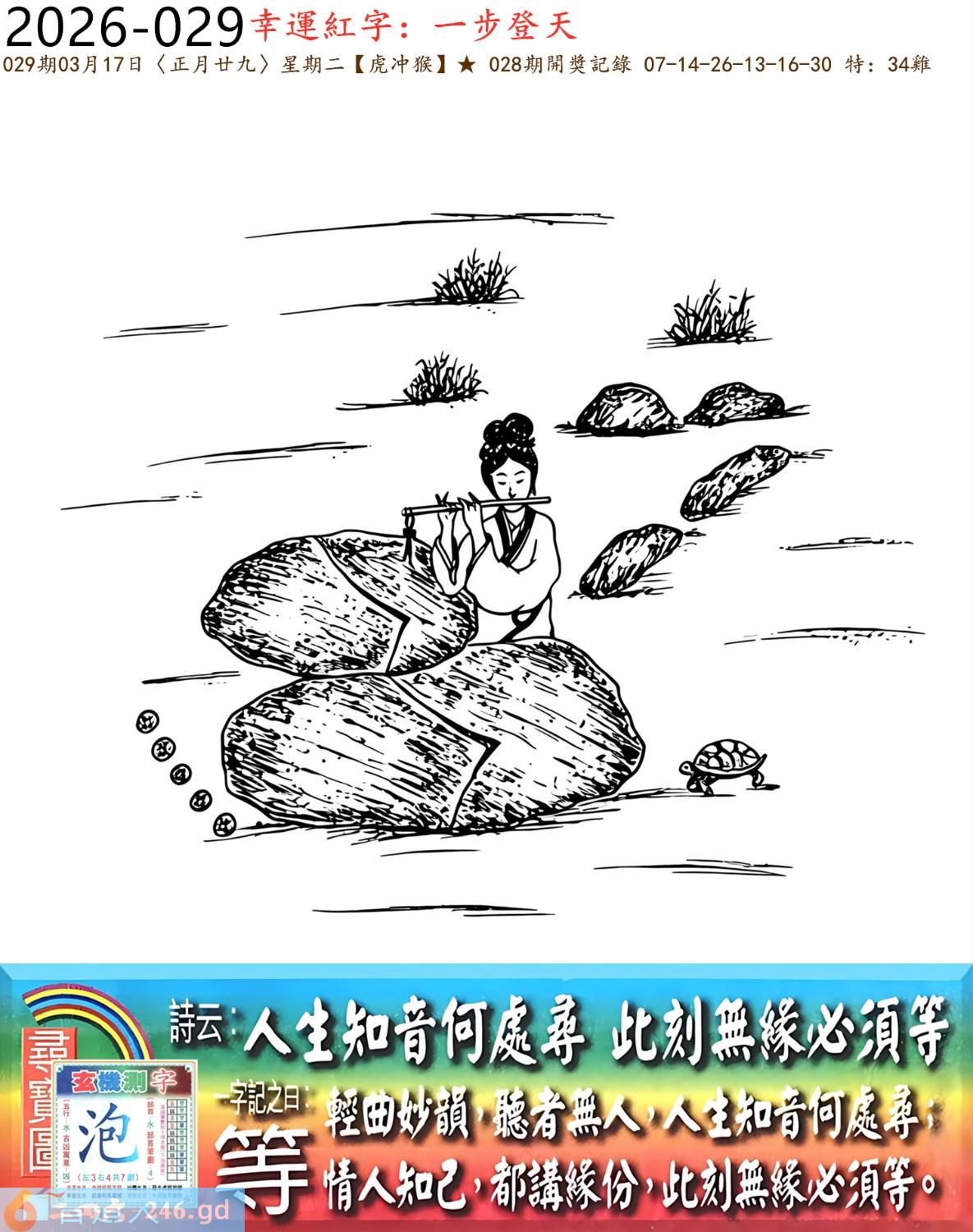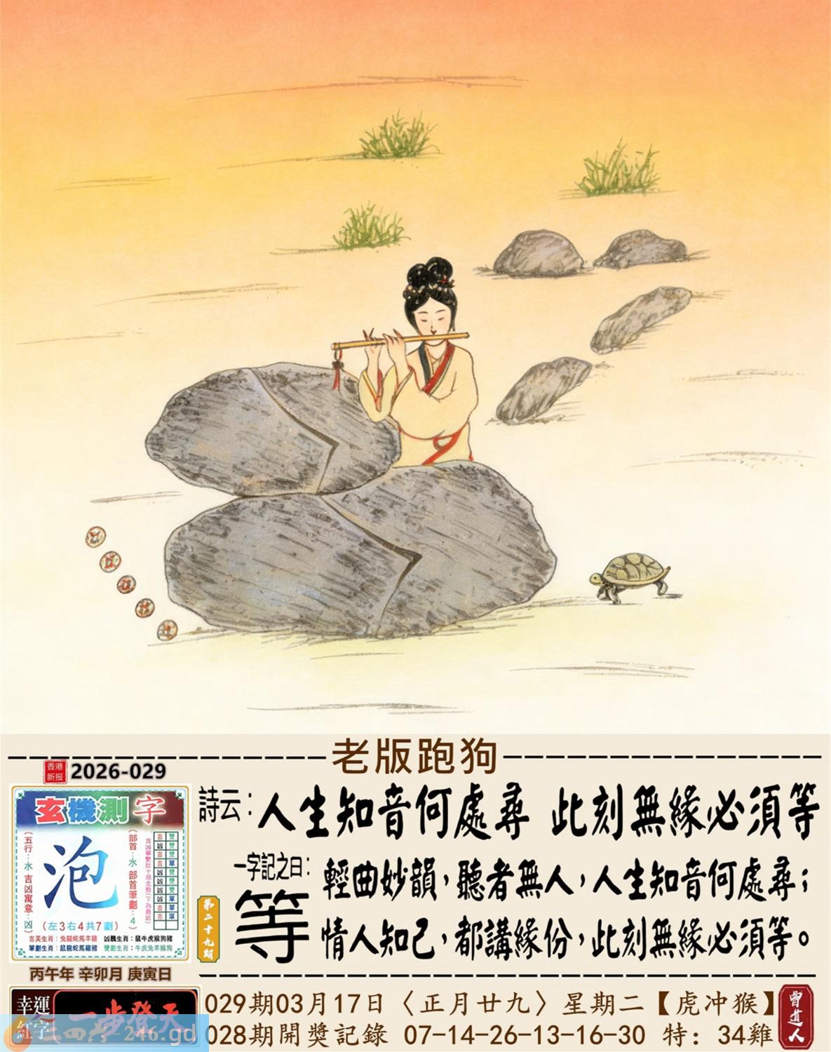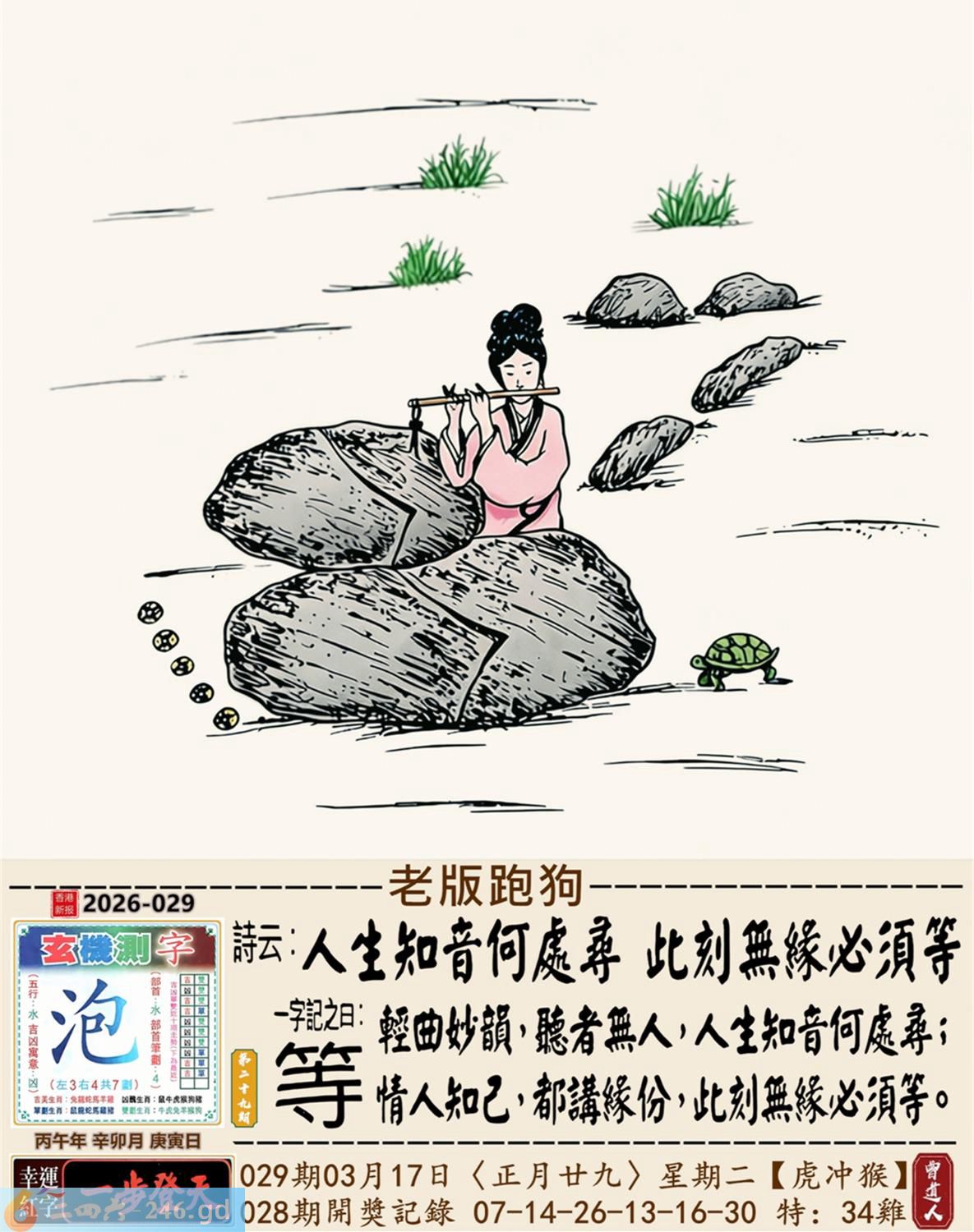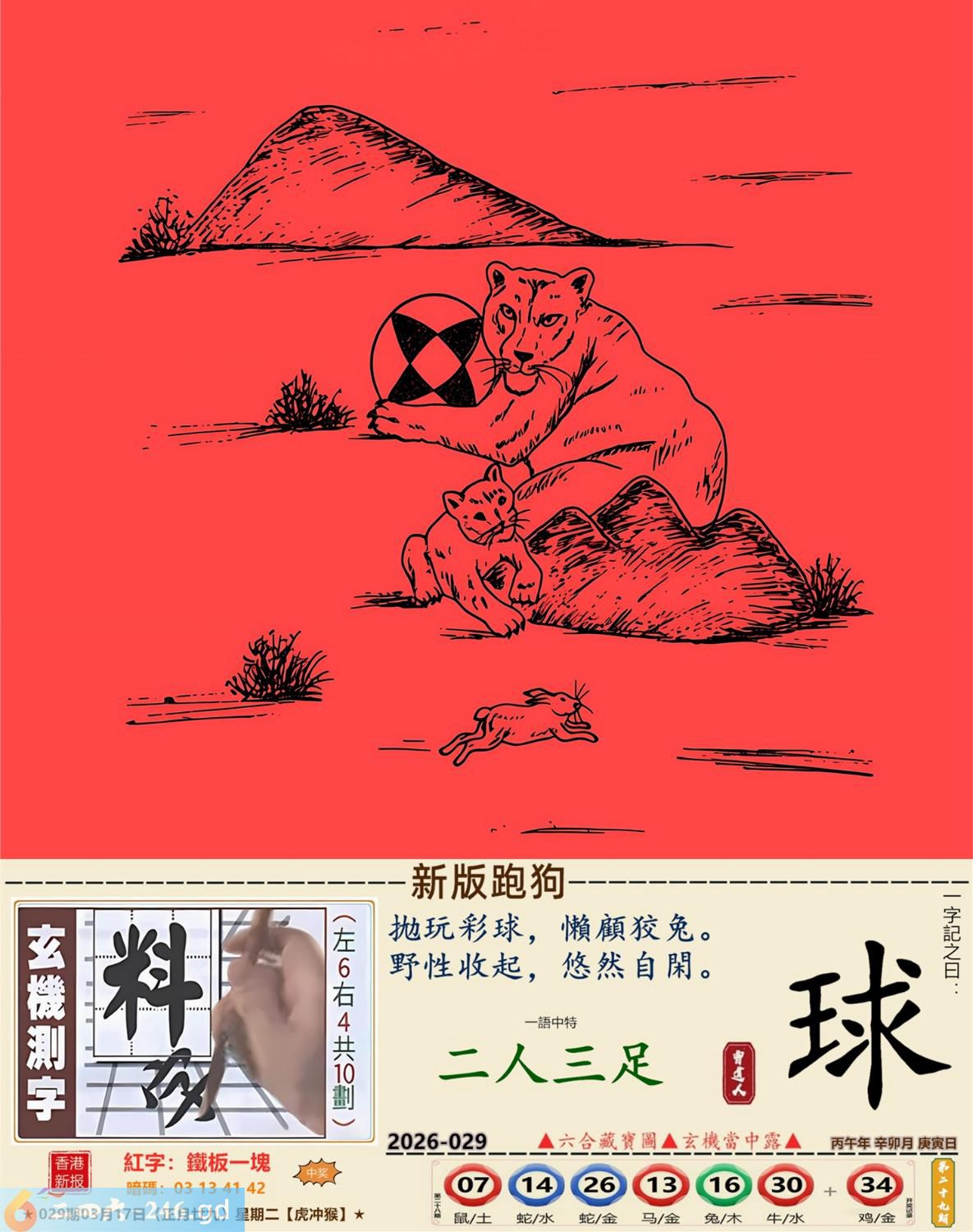 本帖最后由小歪于2026-3-1318:46编辑 2026年3月17日星期二松柏木虎日冲猴 029期:老版跑狗玄機一字記之曰:【等】 詩云:人生知音何處尋,此刻無緣必須等。 輕曲妙韻,聽者無人,人生知音何處尋; 情人知己,都講緣分,此刻無緣必須等。 玄機測字:《泡》 密圖詩:千金難買寸光陰 記:不三不四是無賴 特碼大小單雙句:七上八下心惶惶 今期必中:馬超 029期:特碼歇后語 小偷丢戒指-----贼心疼 029期正版四字梅花诗:六西格玛。 029期火车头:烧伤龙。诗:马死兔伤,三七出特今期来。 029期香港第一手欲钱料:丢三落四。 029期曾道人说:“大姨妈?” 029期另版四字梅花诗:鸡前马到。 029期香港第一手欲钱料:欲钱买温柔可爱的动物。 029期曾道人说:“为什么太阳可以发电”? 029期紅字:【鐵板一塊】 029期暗碼:【01134142】 029期一語中特:【二人三足】 玄機發財圖:磨牙咬嚙牆角移動圖中明鼠紅藍 029期:藏寶圖【待更】 2026年029期【生活幽默】版 〖三只蝙蝠〗 從前有三衹蝙蝠去酒吧喝酒。 第一衹蝙蝠説:"老板,來杯鮮血。"其他兩祗看到了説:"你傻呀,都啥年代了,還喝老口味。" 第二衹蝙蝠:"老板一杯檸檬鲜血。" 其他兩衹蝙蝠笑到:"看你那口味。"第三衹蝙蝠説:"老板一杯凉開水。"