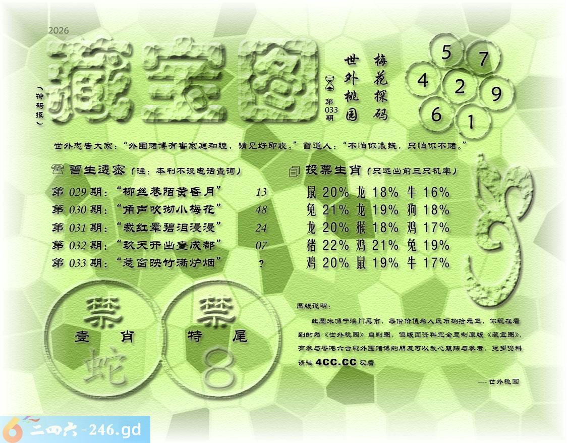 033期藏寶圖 新:竹移不问醉与迷 老:惹窗映竹满炉烟 禁:蛇禁:8尾玄機字:《要》