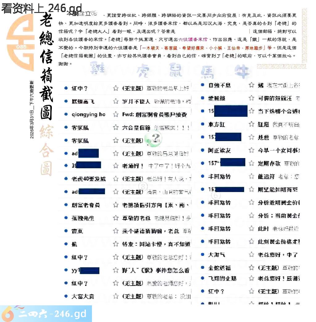 035期:六合皇金句/老总论码/萧公子/林大师/五行夺码/老总信箱截图