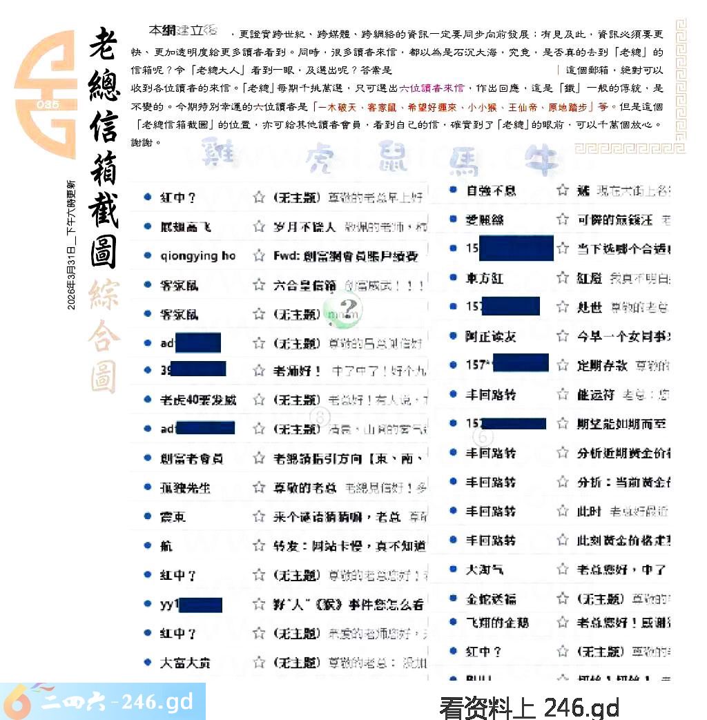 035期:六合皇金句/老总论码/萧公子/林大师/五行夺码/老总信箱截图